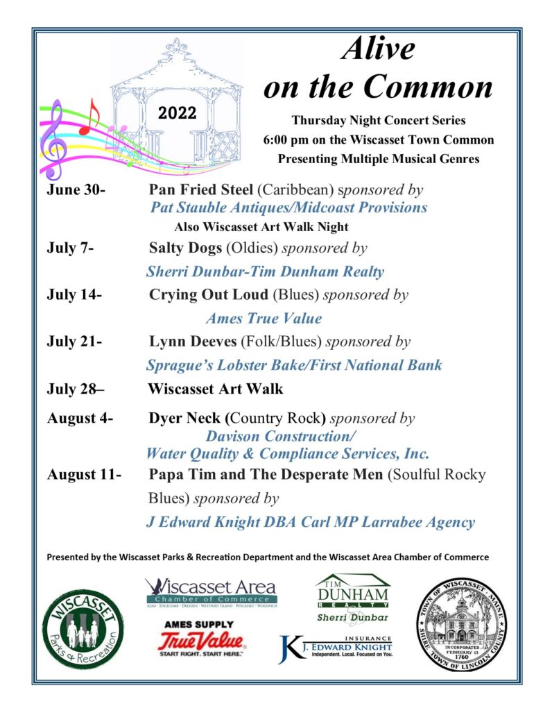 Alive on the Common Posted on June 2, 2022June 2, 2022 by Pat Cloutier Schedule for the 2022 Concert season