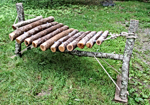 Raw Log Amadinda: During Wiscasset Art Walk, on July 28 from 5 to 8pm, instrument-maker Jim Doble will be making a raw log Amadinda, which will be available for visitors to play at future Art Walks. (Jim Doble photo)