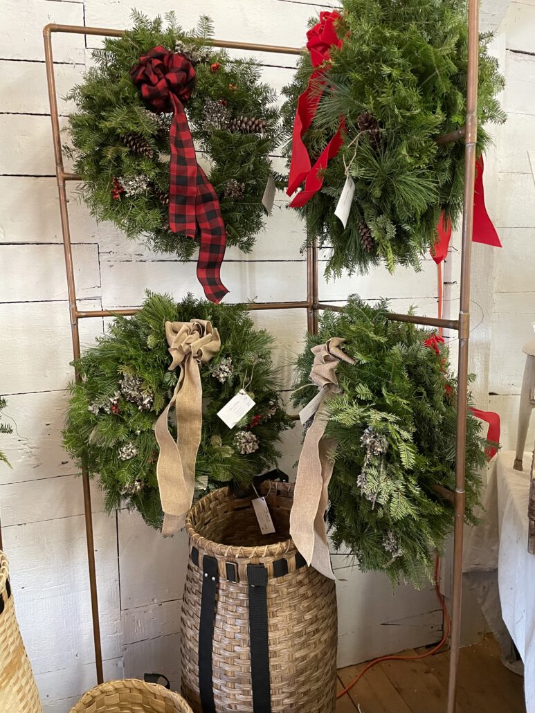 Mindful Gardens wreaths: The Holiday Gift Shop in the Nickels-Sortwell House barn returns to Wiscasset Holiday Marketfest, Dec. 2 to Dec. 4, chock full of artisan made items like wreaths and baskets hand-made by Mindful Gardens. (Wiscasset Marketfest photo)