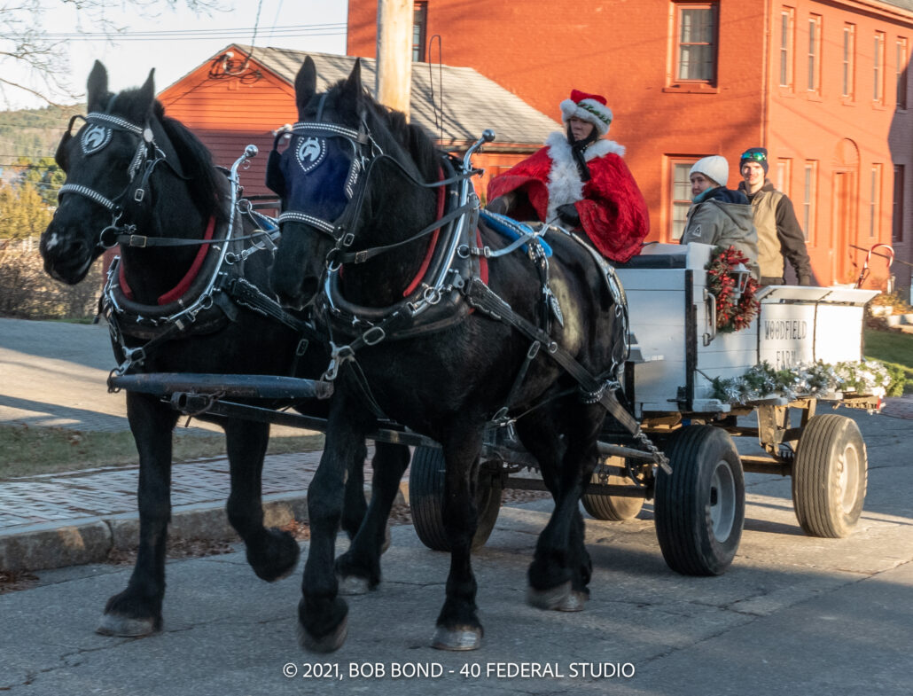 Horses walking: The free horse and wagon shuttle returns to Wiscasset Holiday Marketfest, Dec. 2 to Dec. 4, on both Saturday and Sunday afternoons. (Bob Bond photo)