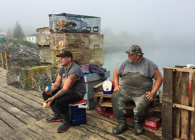 “Working Maine,” the current show at the Maine Art Gallery in Wiscasset, includes this photo by Gina Mazza that captures lobstermen taking a break.