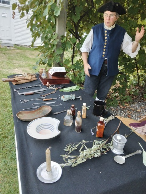 Jack Fourier demonstrates 18th century physicians’s instruments. Fourier is a member of the 1777 re-enactors.