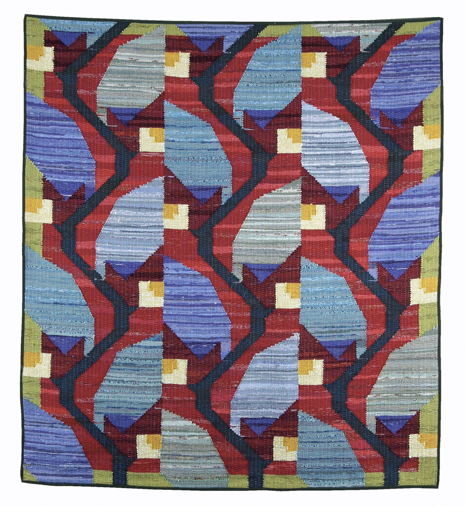 In this woven rug, “Whirled Leaves,” Sara Hotchkiss applies her vision and skill to bring art and beauty into everyday things. The rug is included in “The Artful Interior” at the Maine Art Gallery in Wiscasset