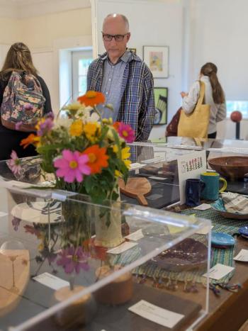In addition to functional arts for the home, the exhibit features still life and interior paintings that enhance the theme. MAG Exhibitions Committee Chair Mark Coates curated the fine arts segment of this exhibit. “The juxtaposition of handmade craft objects with still life and interiors paintings is what makes this show so engaging,” he said. Chairs, next to lamps, on rugs, set off with wall-mounted paintings show the observer how to create artful interiors in their homes.
