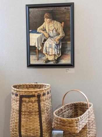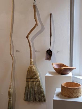 The MAG exhibit invites visitors to stroll through woven masterpieces by Sara Hotchkiss and Hillary Crowell, flip through journals bound by Joelle Webber, set your table with handmade ceramics from Diana Oliver and Karen McGann, lounge in contemporary-styled chairs by Eben Blaney, even sweep your floor with brooms made by Eric McIntyre. The still life paintings, both realist and abstract, remind us of life’s impermanence and the joy in filling it with beautiful items.