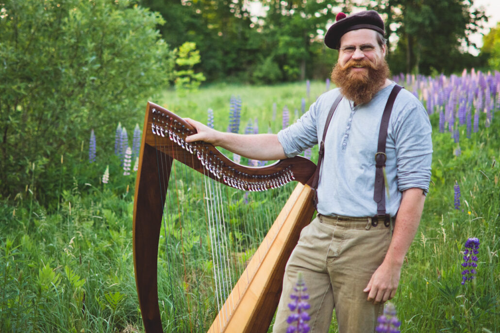 Alex Bigney: Celtic harpist, Alex Bigney, plays for Wiscasset Art Walk sidewalk strollers on Thursday, July 31, 4-7pm. (photo courtesy Alex Bigney)