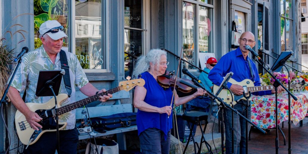 Long Branch on sidewalk: Long Branch plays the sidewalk during Wiscasset Art Walk on Thurs., Aug. 28, 4-7pm, featuring country, bluegrass, and a bit of early folk. (Bob Bond photo.)